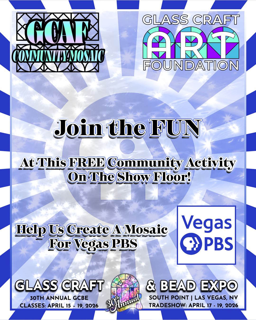 Las Vegas Management would like to thank all the members of the art glass industry, the teachers, exhibitors and students for supporting the Glass Craft & Bead Expo over the years. Many have been with us since the first show. The show has had steady growth, and is proud to promote art glass through education and by providing a quality showcase for product and glass artists alike.